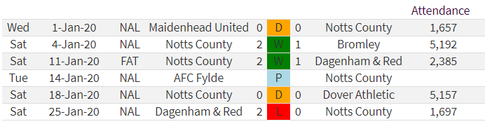 That said with just the one win in the league during January the run came to an abrupt halt in the last game of the month with a 2-0 defeat at Dagenham, a game that saw Callum Roberts play his first 68 minutes in a Notts shirt and a game where Daggers exacted their revenge following Michael Doyle’s long range injury time winner in the FA Trophy earlier in the month.