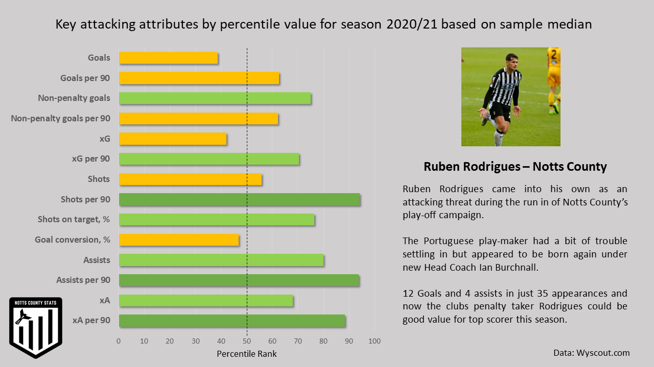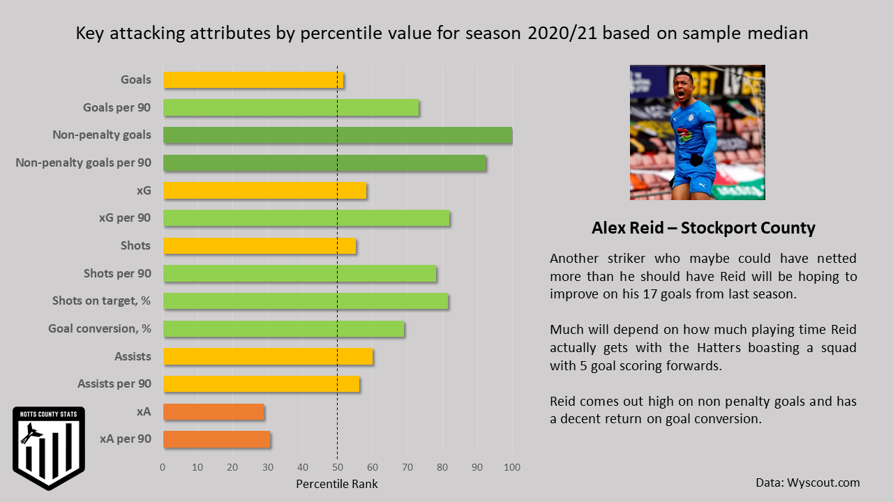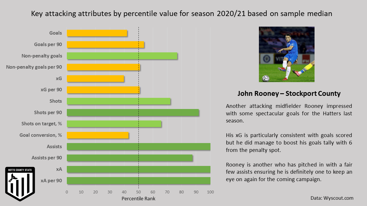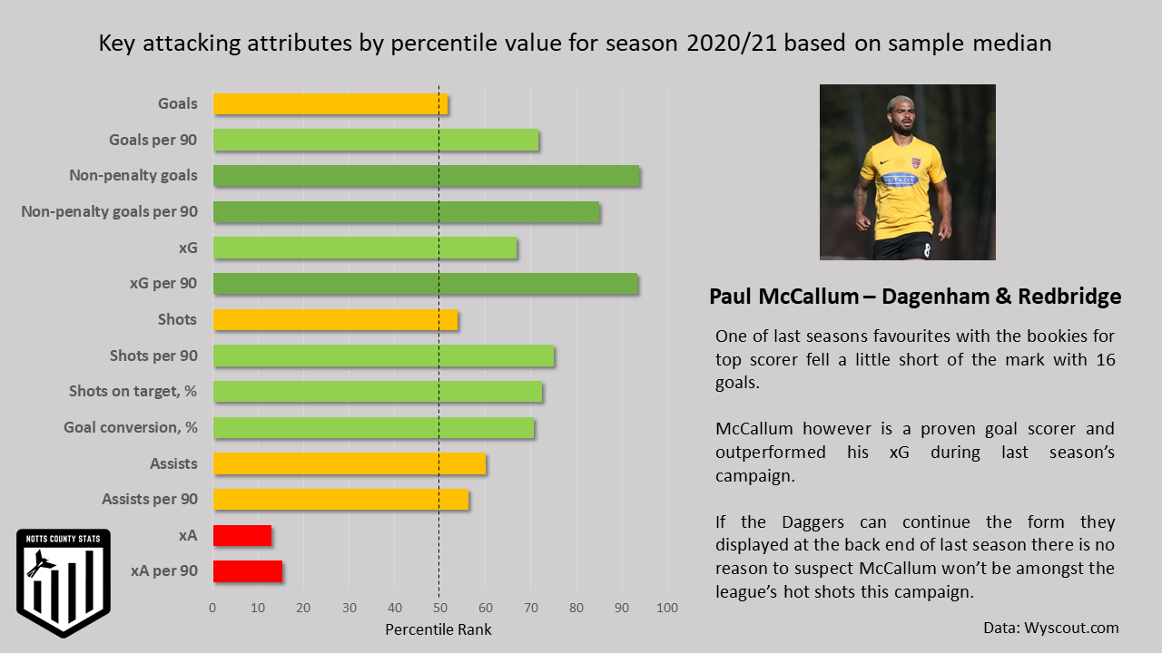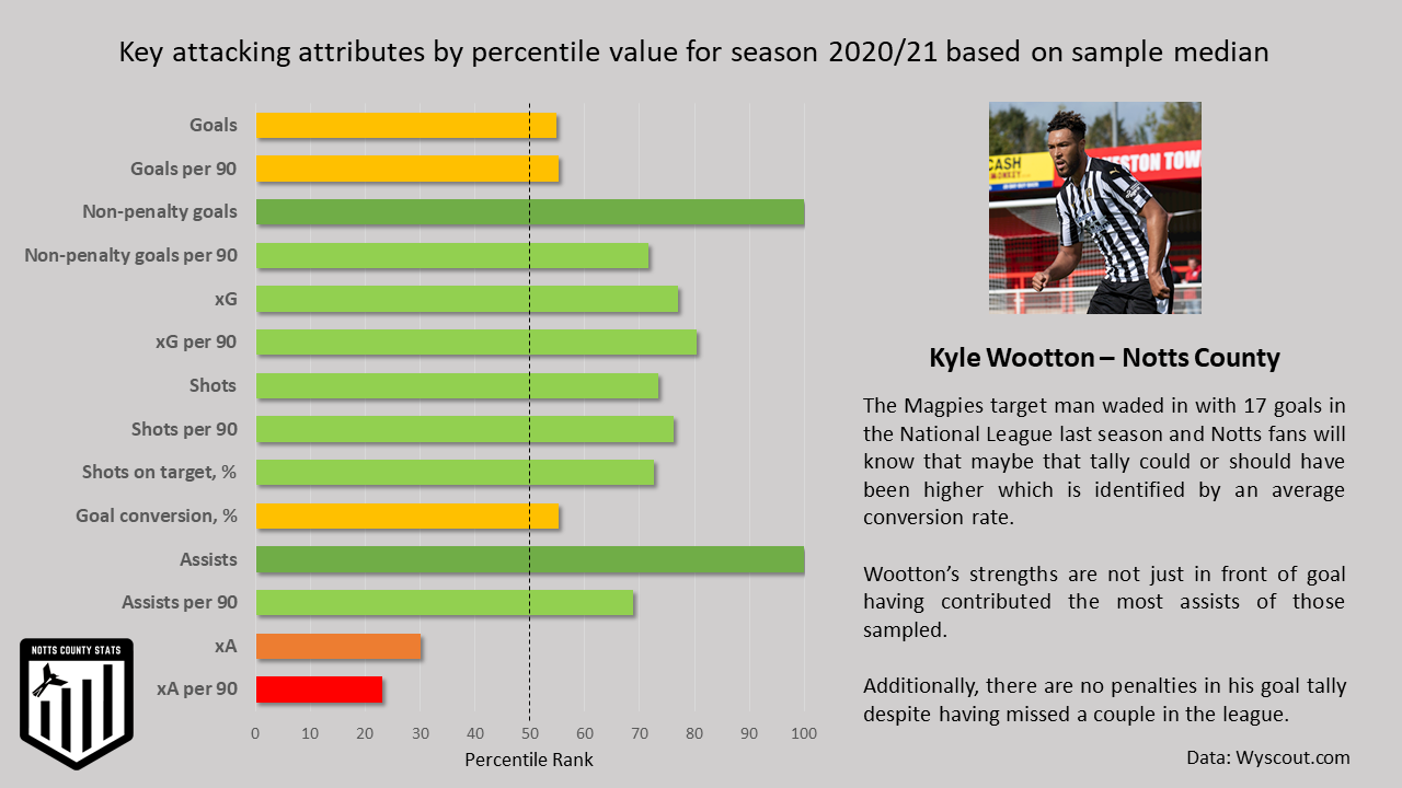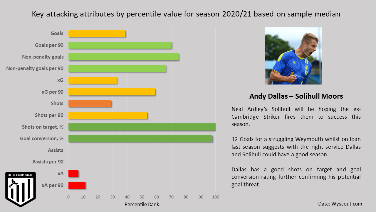 The stats in the visuals relate to National League and play-off games only. The bars in the charts represent the percentile rating (0-100%) for that player compared to the other 19 players in the article.