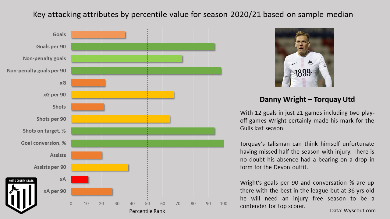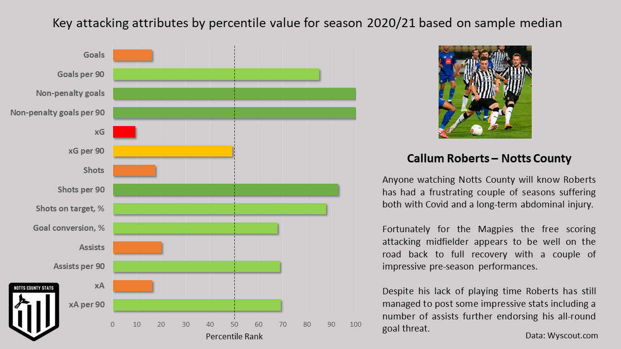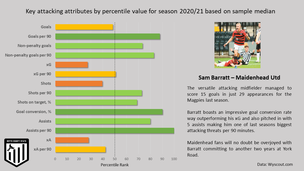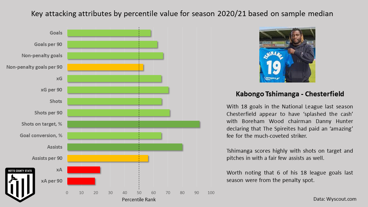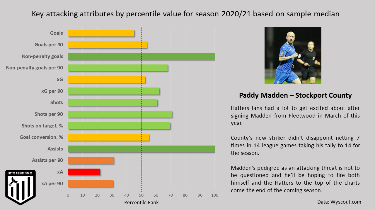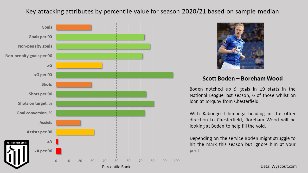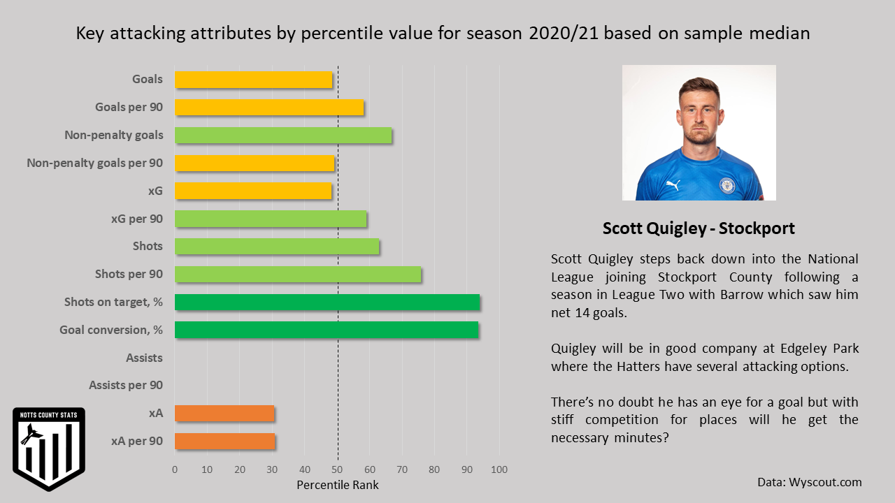 The stats in the visuals relate to National League and play-off games only. The bars in the charts represent the percentile rating (0-100%) for that player compared to the other 19 players in the article.
