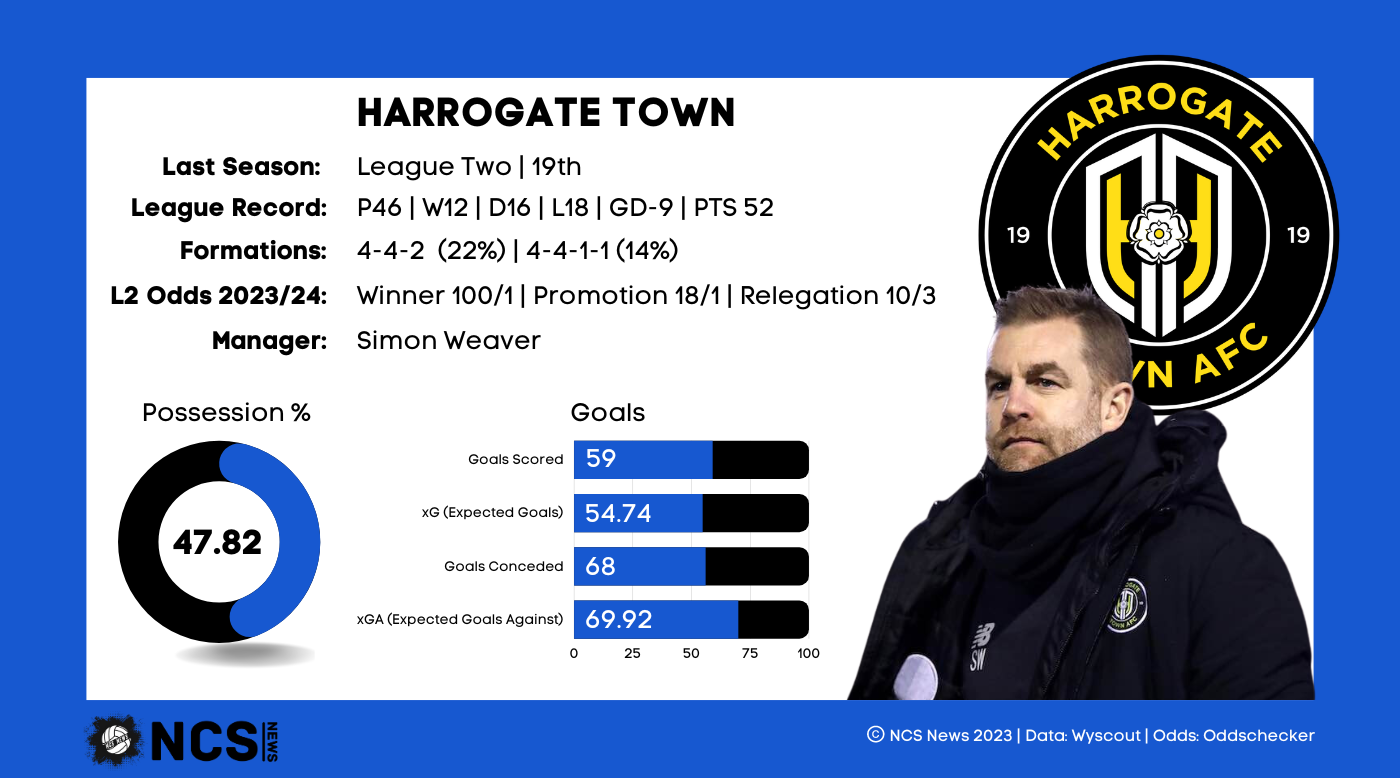 The Sulphurites finished 19th last term, just 9 points above the relegation zone. This was despite the fact that they were the top scorers in the bottom half; in fact, only 1 side, Swindon, scored more goals than Harrogate from 9th or below. In fact, only 3 sides lost fewer games in the bottom half, underlining that there were positives last season. However, only 4 sides won fewer games than Harrogate last season, and those 4 sides finished in the bottom 4. Furthermore, only 3 sides conceded more than their 68 goals, once again the 3 that finished in the bottom 3. The task therefore for Simon Weaver this season is retaining their firepower, while tightening things up at the back. They’ve already brought in 3 defenders and a goalkeeper, but they may struggle to retain their attacking threat as key midfielder Alex Pattison, who scored 9 and assisted 5, departed for Bradford.