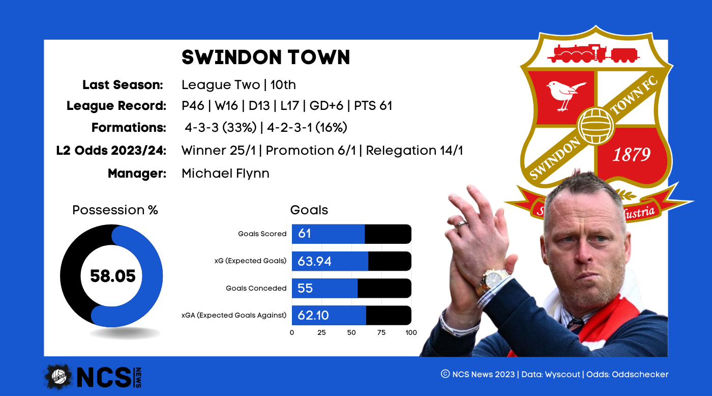While finishing 10th last season, just a year after they secured a playoff finish, would have been a disappointment, there were plenty of positive signs for the Robins to take into this season. While they finished a stark 14 points outside of the playoff places, there is an argument that they were very much ‘best of the rest’. They were the only side outside of the top 8 that finished with a positive goal difference, +6. Furthermore, they were the top scorers outside of the top 8 with 61 goals, the same amount scored as the 1st, 2nd and 6th place teams. Their downfall was defensively, but even then they didn’t have a particularly bad record. They conceded 55, the same amount as Mansfield in 8th and just 1 more than Salford in 7th, that all important playoff spot. Swindon averaged the highest possession total in the league too, 58.3%, sticking to their principles and playing a ball dominant style. Their poor points tally can be pinned upon the month of March, and the early portion of April too, where they went 9 games without a win, and picked up just 4 points from a possible 27. Their form over the whole season was fairly patchy; they failed to put together a string of 3 wins or more, and suffered 3 or more consecutive losses on 2 separate occasions. They will aim to turn good performances into results, which is of course easier said than done, but Swindon fans have reason to be cautiously optimistic this season, especially with a new manager at the helm, who may bring fresh ideas with him.