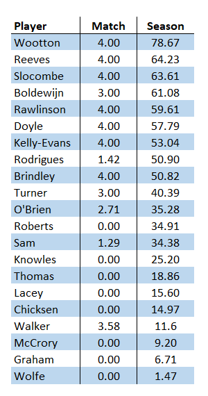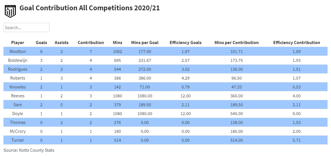 Goal contribution table updated and with Thomas out for a while it's hard to see why Knowles maybe hasn't been given a bit more game time.