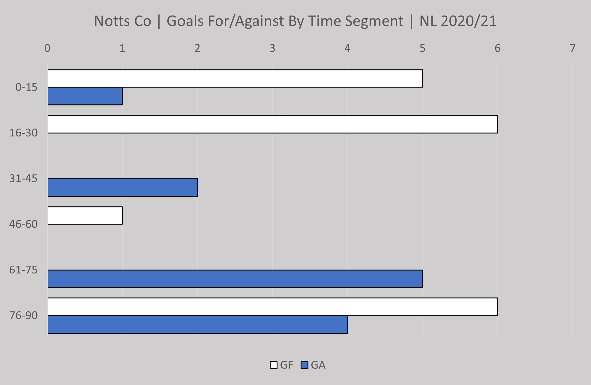 Goal time segments updated and Notts still struggle between the 31st and 75th minute. By contrast 9 of the 12 goals conceded so far this season have come in the last 30 mins.