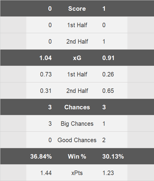 Finally the xG ratings for the match including how that converts to win% and xPts.