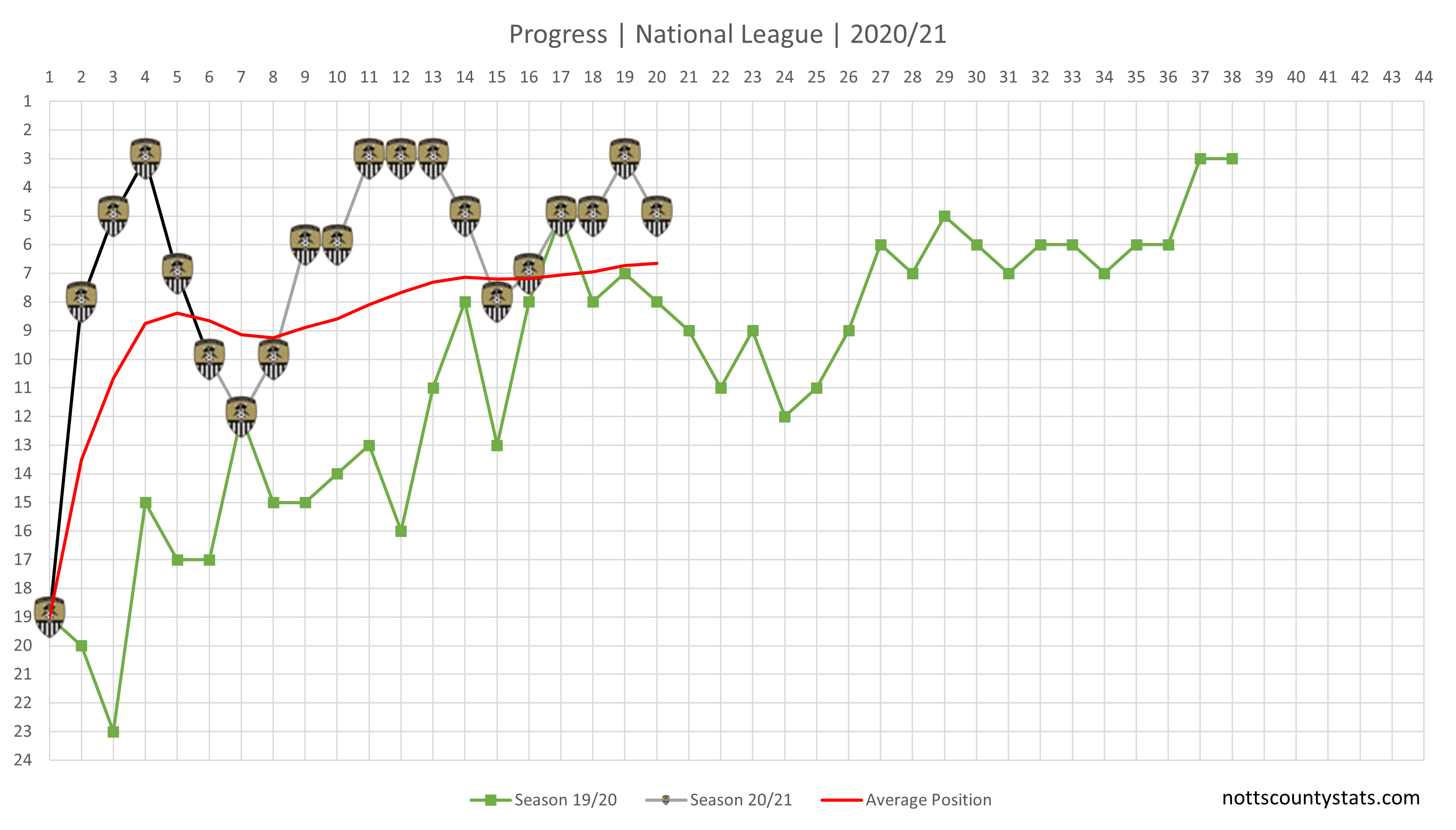Progress updated and defeat sees a drop back down to 5th and the avreage position now starting to level off around a play off place.