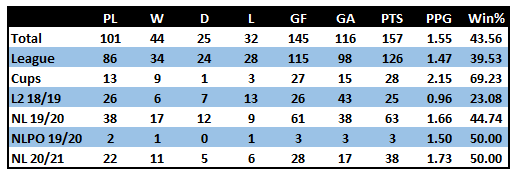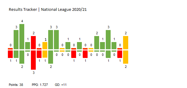 That said on the face of it the numbers actually offer some encouragement. Notts are currently 7 points and 5 places better off than at this stage last season. We are still comfortably in the top 4 on PPG with a rate that would under normal circumstances see a top 3 finish and still have games in hand on most, Sutton being the exception.