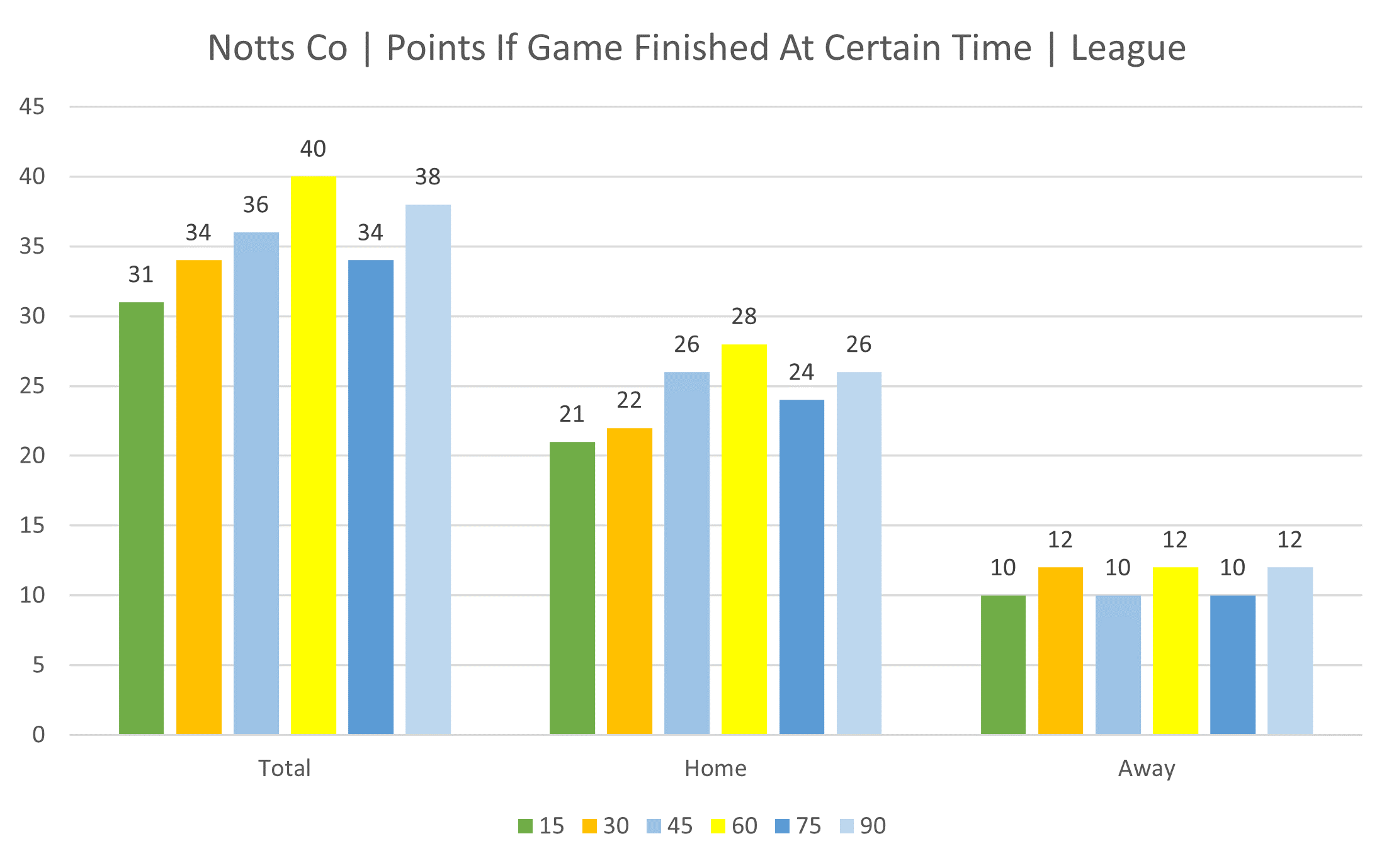 Looking at this Notts continue to show a trend of getting themselves into their highest points by the 60th minute but then there is also a trend of dropping points again before pulling them back in the final 15 mins.