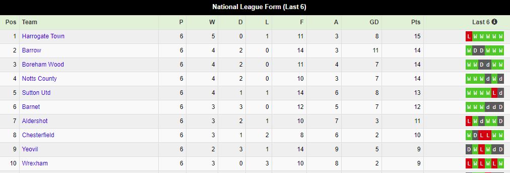 We have dropped a place to 4th in the last 6 form table. Harrogate now the form team in the league.