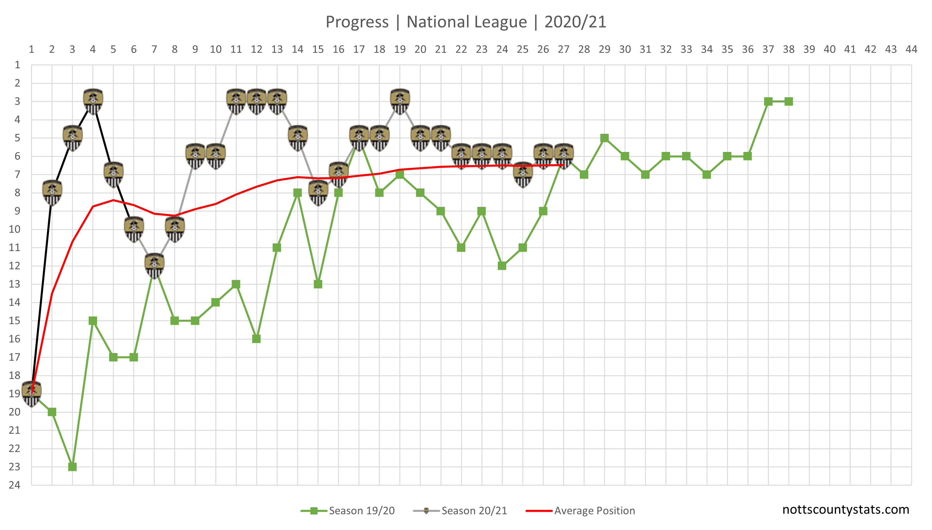 Progress updated now and the draw ensured Notts hang on to 6th position which has pretty much become the norm over recent weeks. It's interesting to see that after the same number of games last season we were also in 6th place. I suppose the difference is that last season we were on an upward trajectory whereas this season our league position has become quite static.