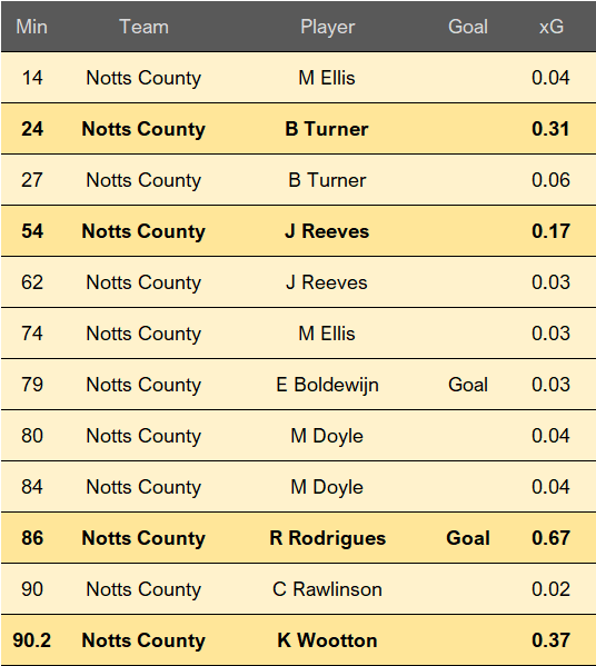 xG data for the draw at Yeovil and if ever there was a game of two halves this was it. Yeovil's threat all but dried up by the 59th minute as Notts eventually found their attacking boots.
