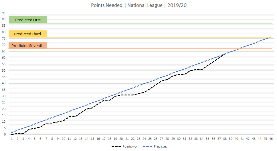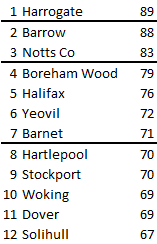 Points needed for third place then is obviously 76 points and Barrow's average currently suggests a first place finish on 87 points . . . but more on this later.