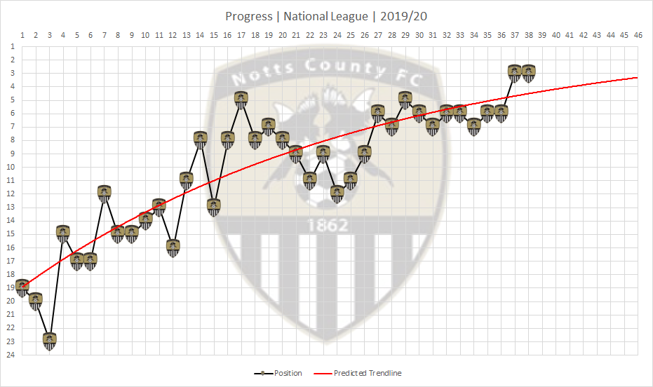 With only a handful of games being played the win for Notts sees them edge closer to securing a top 3 position, but more than that, for the first time this season the calculations I use for trying to forecast final table positions shows Notts are now firmly in the race for the title. Obviously there is a lot that has to happen for that to become a reality and it is helped by the fact Barrow and Harrogate didn't play but the probability is now evident.