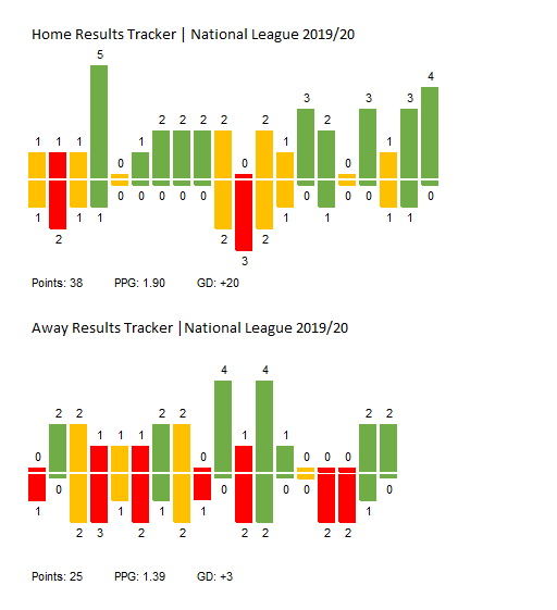 Notts have accrued 38 points at home following the win over Eastleigh with a PPG of 1.90 and a +20 GD.