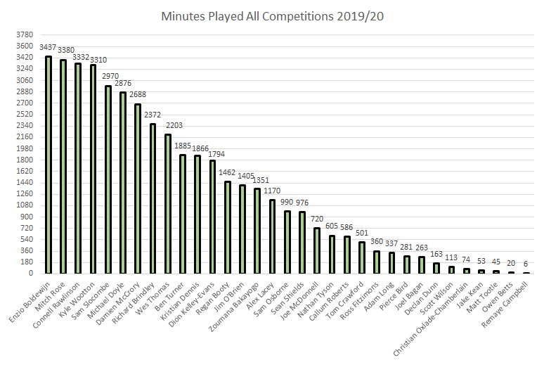 Minutes played in all competitions updated below.