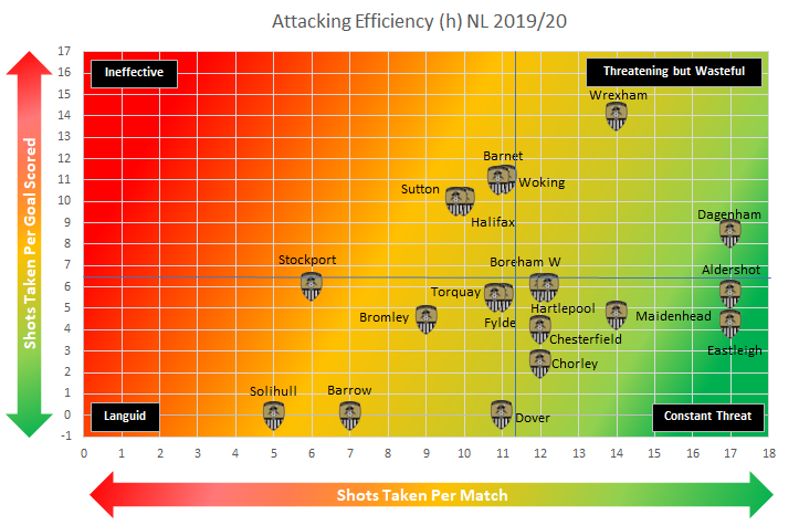 Notts currently manage to score roughly every 6.5 attempts on goal at home.