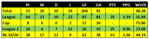 With the win over Eastleigh Ardley now has a win percentage of just over 40% during his time in charge of Notts to date. Win percentage for the National league is now up to nearly 45%.