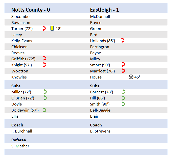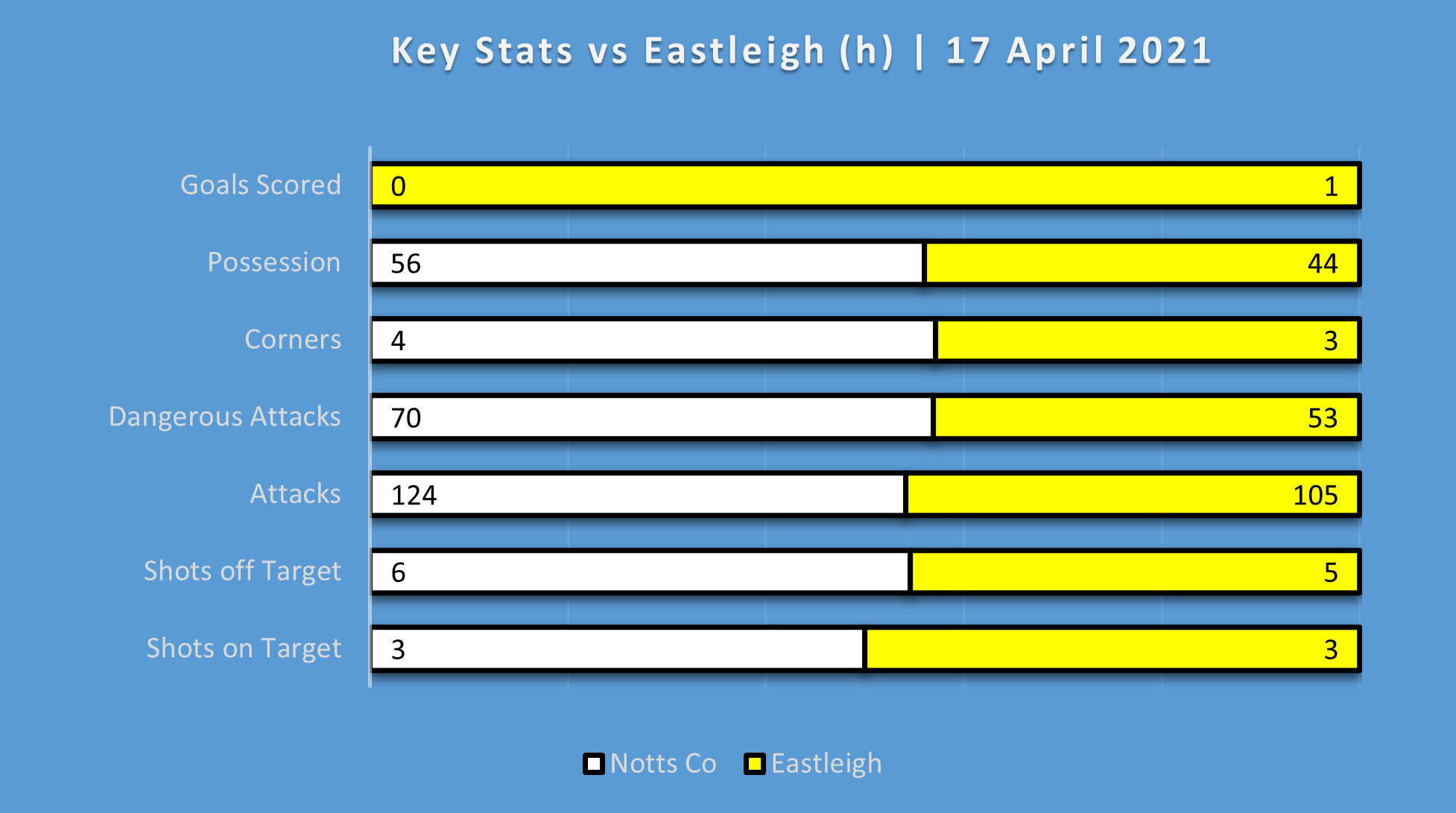 Anyway, we've got bigger fish to fry, starting with a promotion winning play off charge to the end of this season, so with that in mind let's get straight down to it with the stats from Saturday's defeat where Notts provided the target practice for the Spitfires of Eastleigh . . .