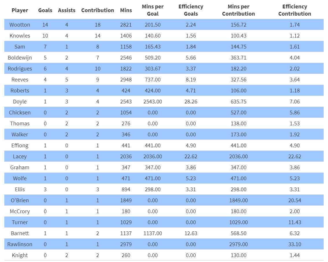Goal contribution table updated. Again, you can find this on the website and sort columns etc.