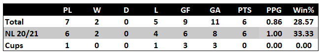 P 2 | W 1 | D 0 | L 1 | F 4 | A 2 | GD +2