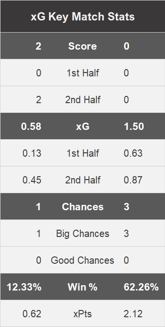 xG key match stats and to further emphasise the point Notts expected win percentage was 62.26% and xPTS of 2.12 meaning they would have been expected to win the game comfortably.