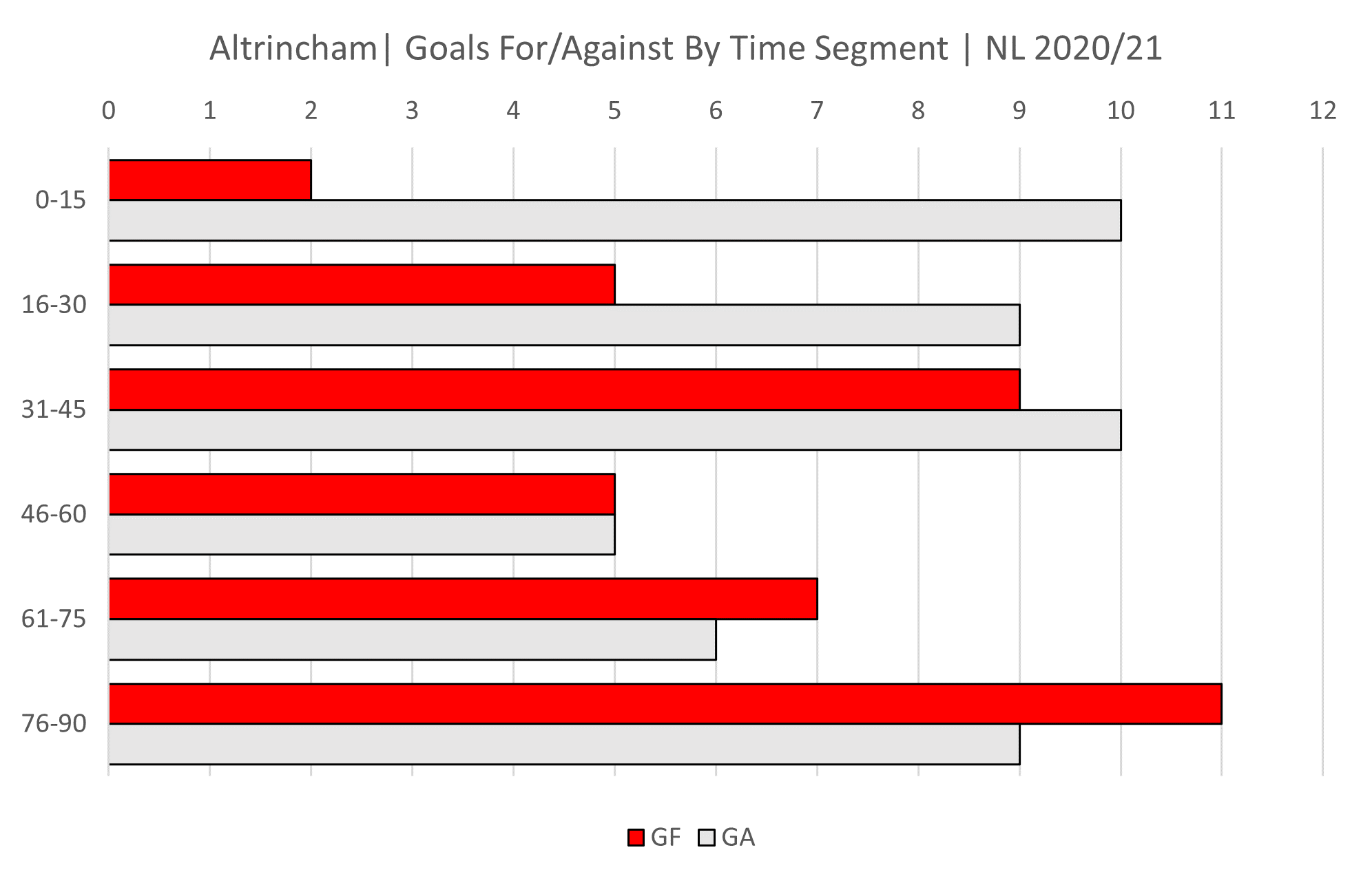 Goals for/against by time segment for Altrincham.