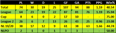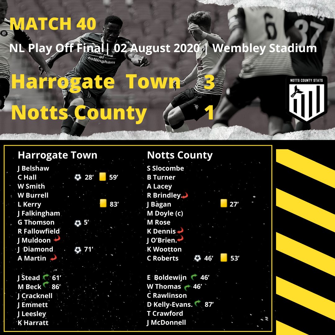Including the two play off games Notts have played 40 NL matches, scored 64 goals and conceded 41 giving a goal difference of +23.
