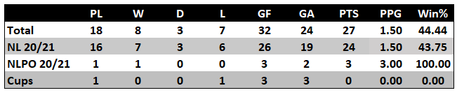 Since the 2-0 defeat at Eastleigh Ian Burchnall has steered his team to 6 wins and two draws in their last nine games. His overall win percentage is looking a little better now at just over 44%.