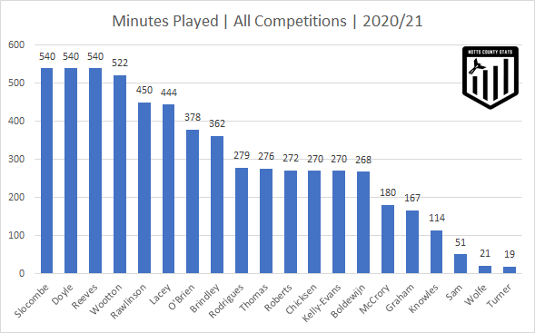 Minutes played chart updated and Neal Ardley has now utilised 20 of his 23 man squad of which 3 players have played every minute of the first 6 games.