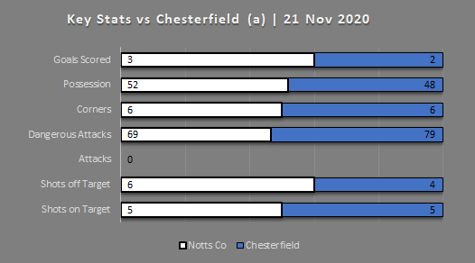 However, old habits die hard as Notts sat deep once again in familiar manner allowing Chesterfield to get back into the game with an equaliser just 9 minutes later.
