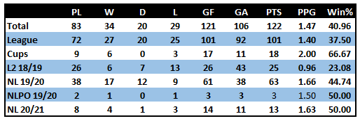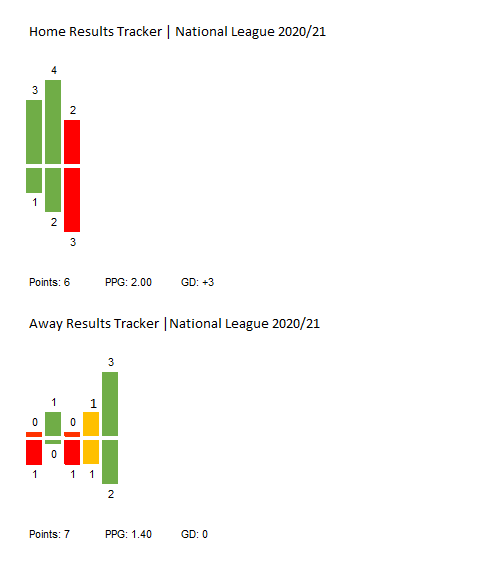 There was a good response to the new attack/defence charts for all clubs especially from fans of those who were doing particularly well or indeed badly so I'm going to keep that one going but update it maybe every few games. I will be introducing a National League stats page to the website soon where you will be able to access this content.