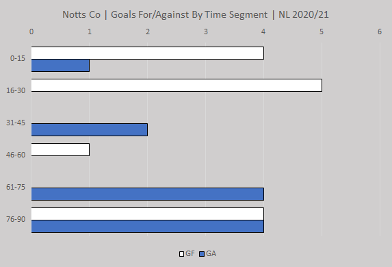 Goal time segments updated and the two late goals for Notts helps to improve the number of goals scored second half but remain more dominant in the first 45.