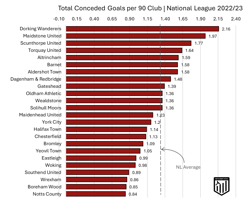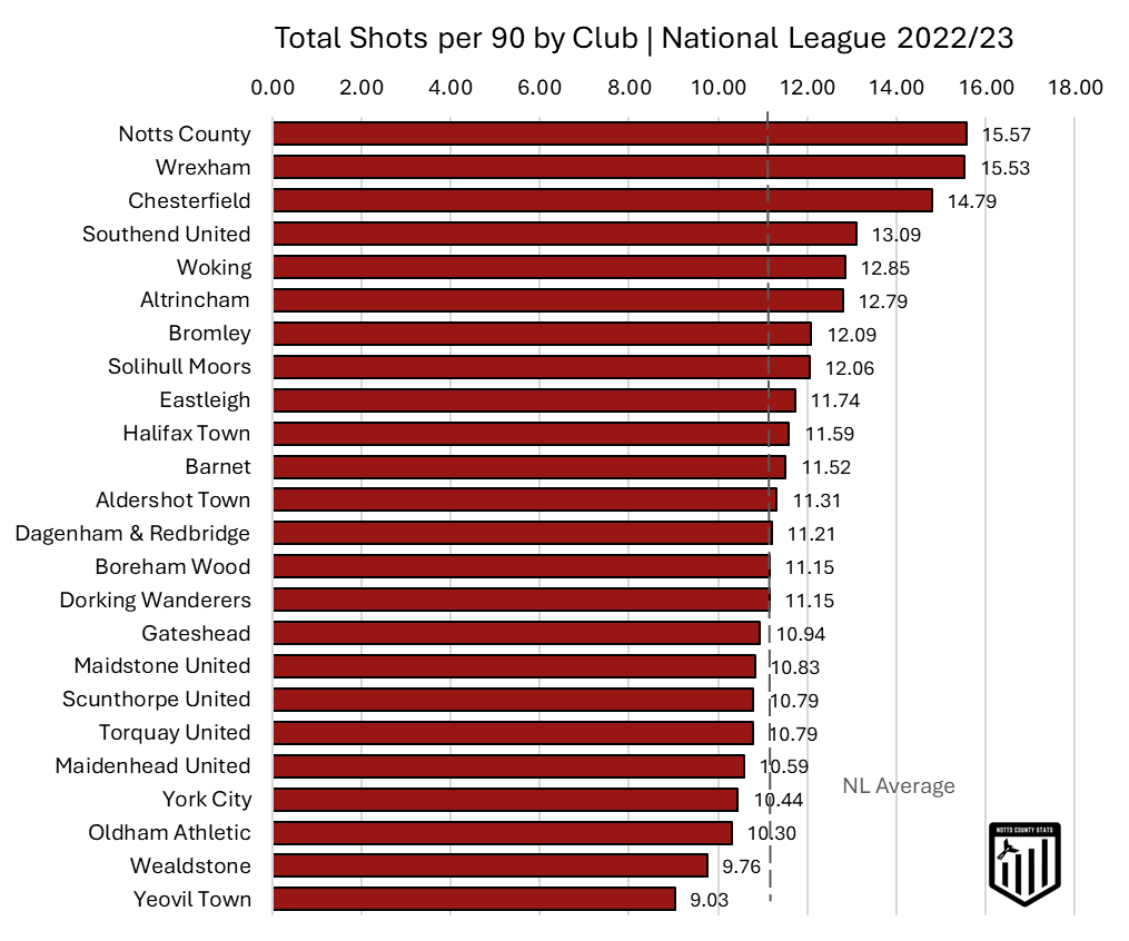 Again, as would be expected, Notts County and Wrexham both creating the highest value chances with Southend and Woking both posting relatively high xG averages per 90.