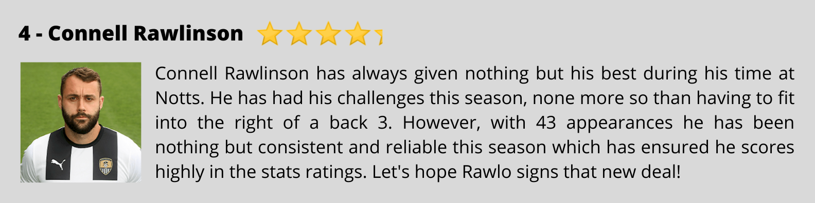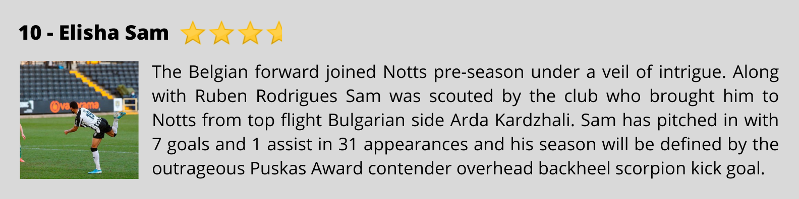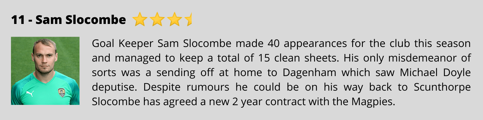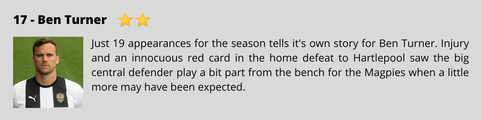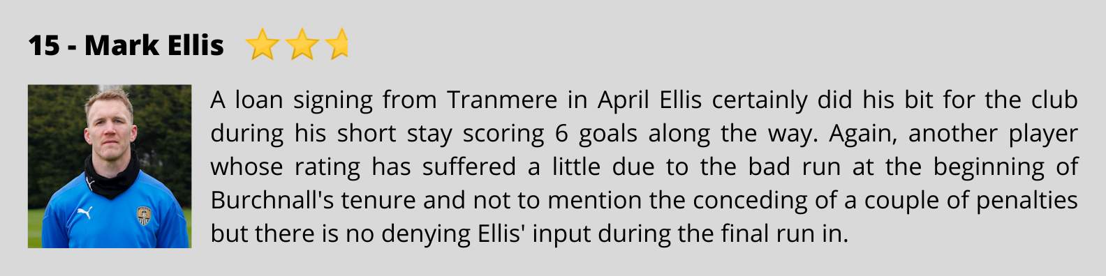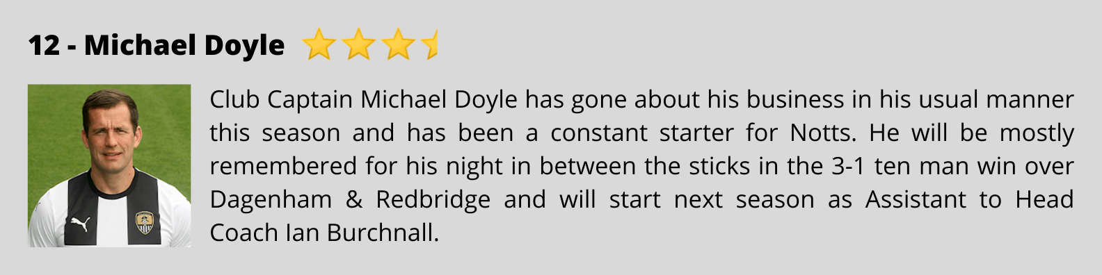 There were 32 players made appearances for Notts this season and I have only rated those that appeared in 10 or more games regardless of minutes played.