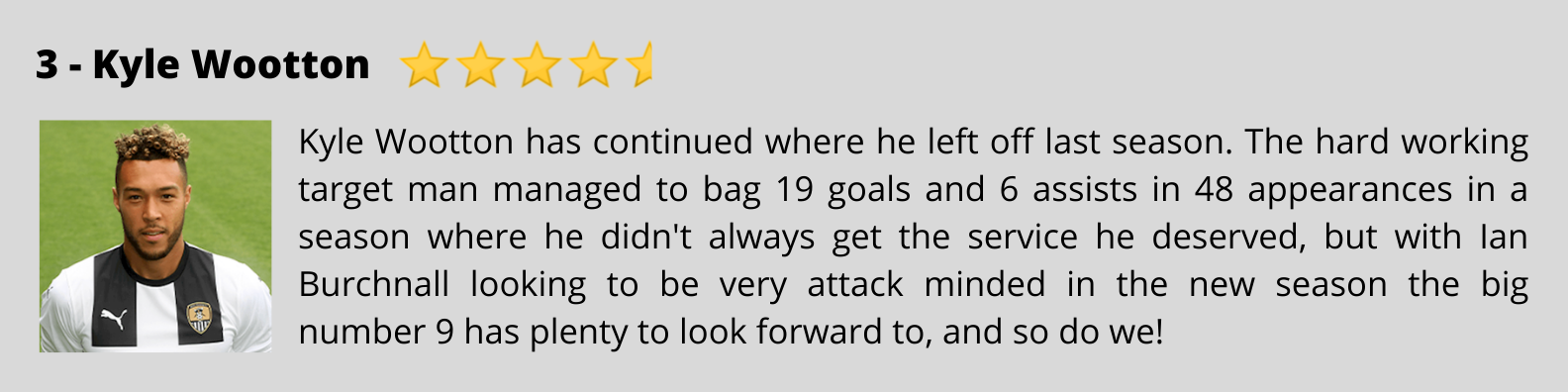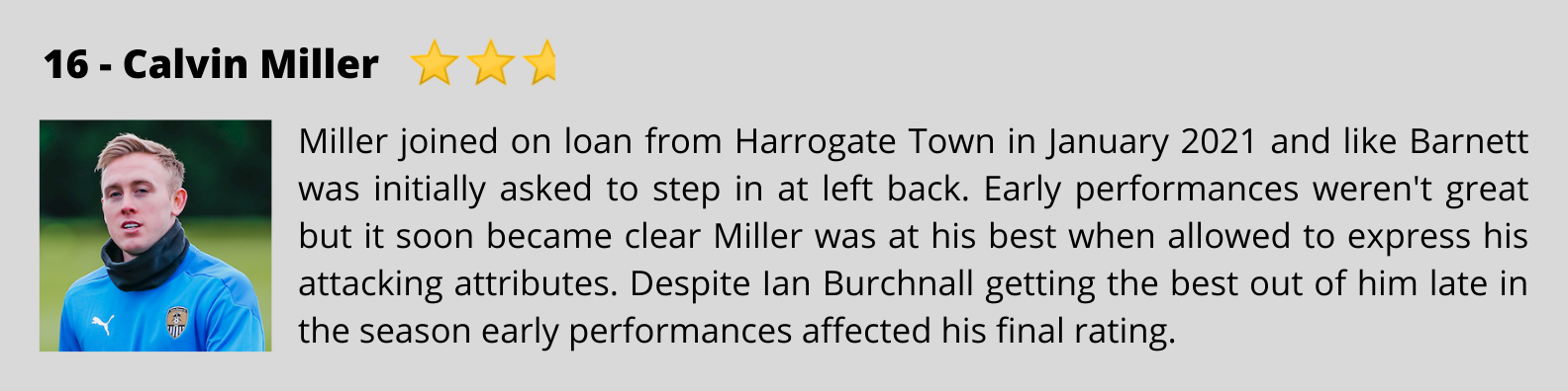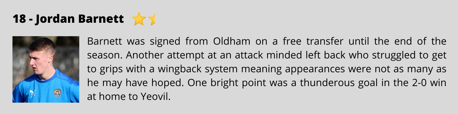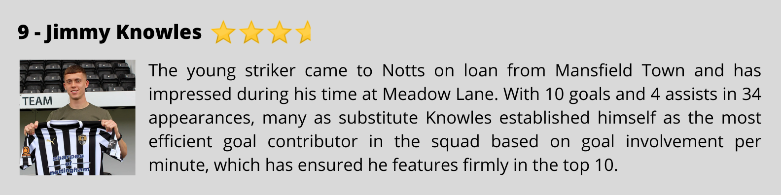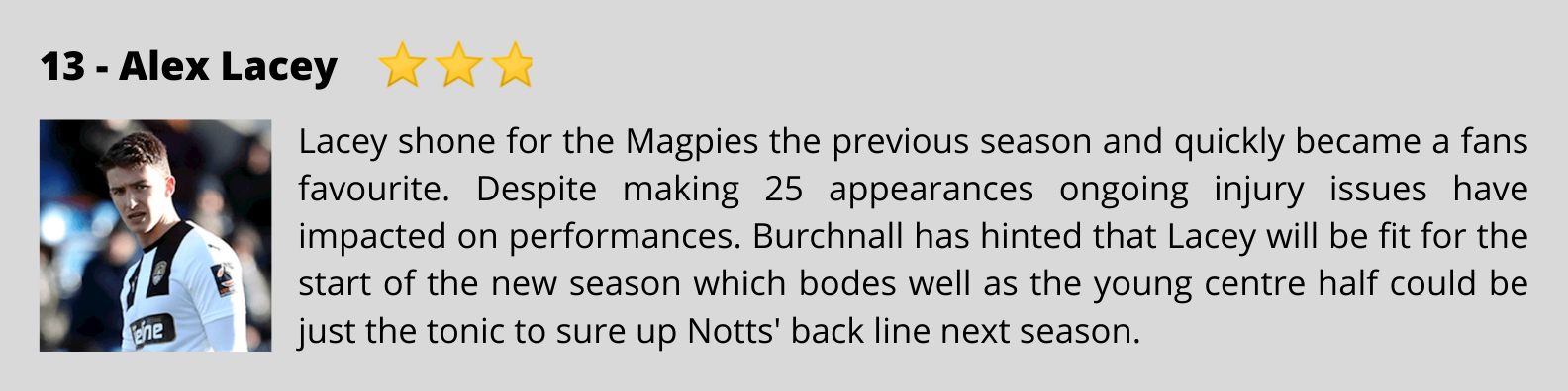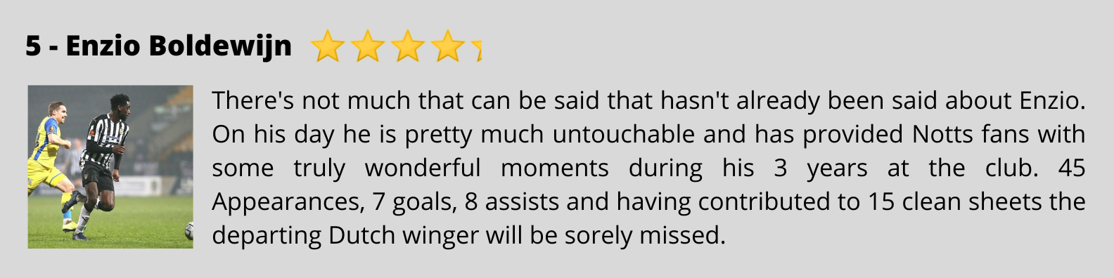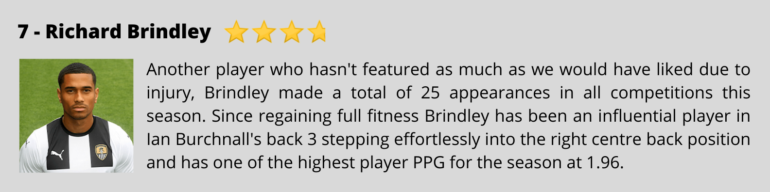 There were 32 players made appearances for Notts this season and I have only rated those that appeared in 10 or more games regardless of minutes played.