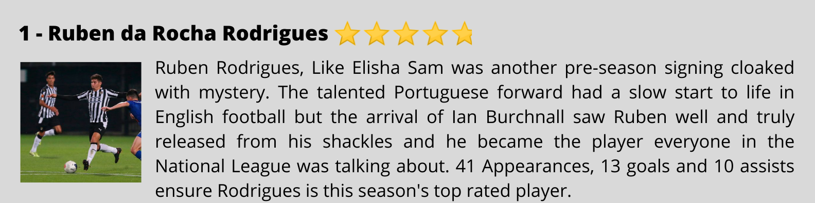 So that's it, Ruben Rodrigues did so much in the latter part of the season that he earned enough points to finish this season's number one stats rated player.