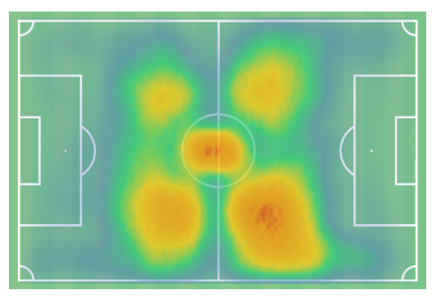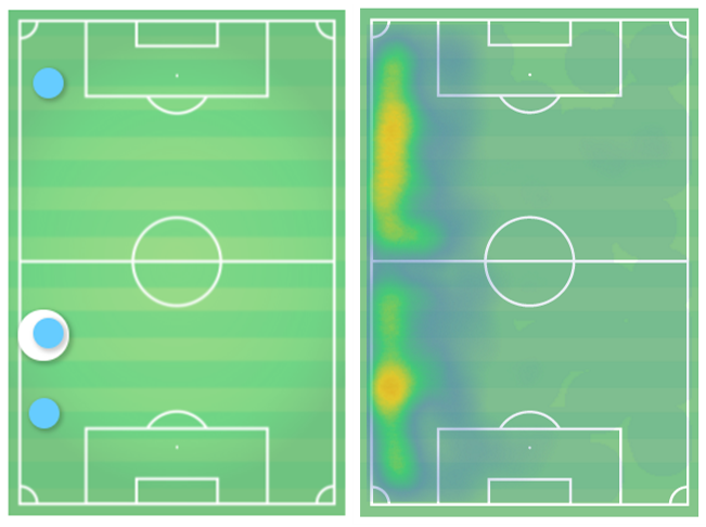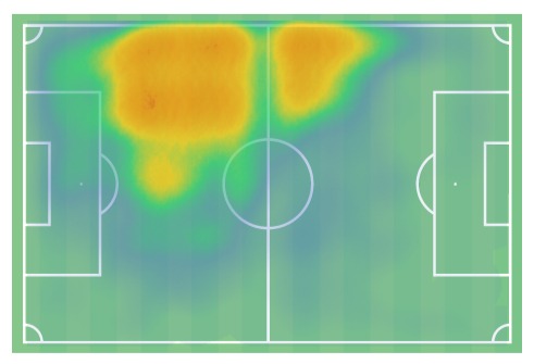 This flexibility is further confirmed by his heatmap and positional maps above where despite being predominantly a left sided midfielder he has the ability to contribute in the middle of the park as well.