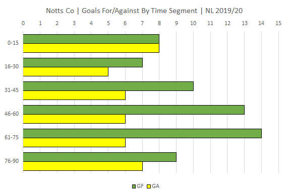 In comparison Notts have taken the lead in 19 of 38 games and have lead at half time on 12 occasions.
