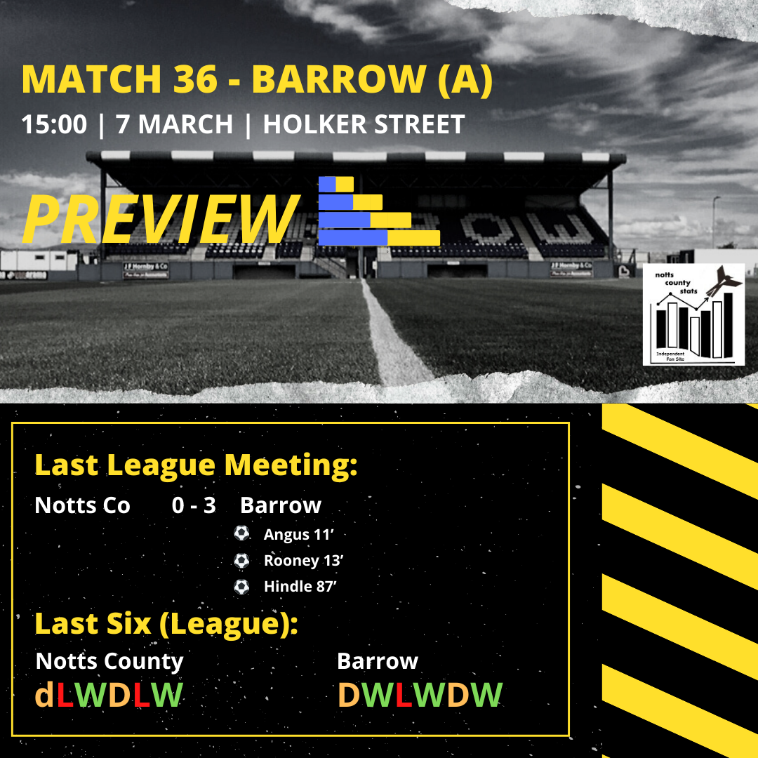 The odds are stacked heavily in Barrow's favour, but Notts' can take some confidence from the fact they continue to compete at the top of the defence charts, there is an improvement in results on the road and with a couple more key players starting to return from injury will hopefully have a bit more strength on the bench.