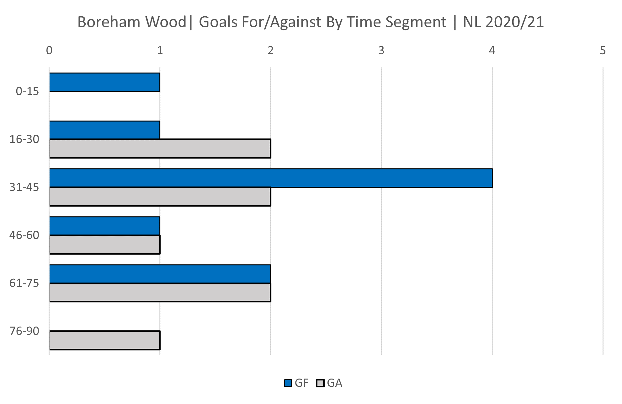 Where Notts are making a habit of scoring early or late in games Boreham Wood appear to be at their most dangerous just before half time.