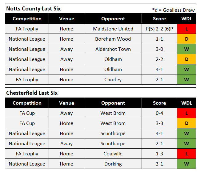That said their league form currently sees them second in the last 6 form table with 15 points from 18, a point less than Wrexham and a point more than Notts.