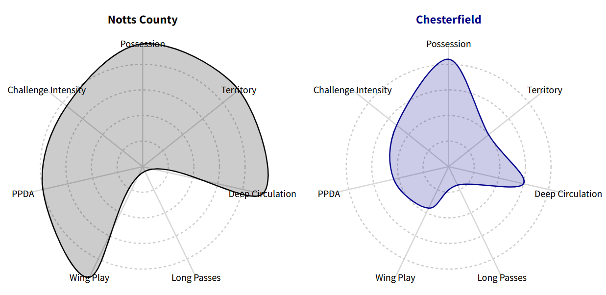 Looking at the playing styles it's interesting to see that Chesterfield score highly in the possession stats and deep circulation confirming they are a team who are very comfortable on the ball.