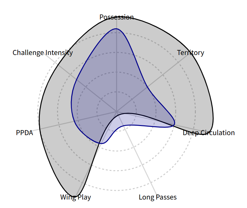 Their pressing (PPDA) and challenge intensity is better than most but you would expect them to be a bit higher for territory.