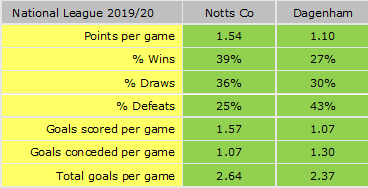 The season stats would suggest that Dagenham are currently experiencing a bad patch as last 6 stats are all considerably below their season averages.