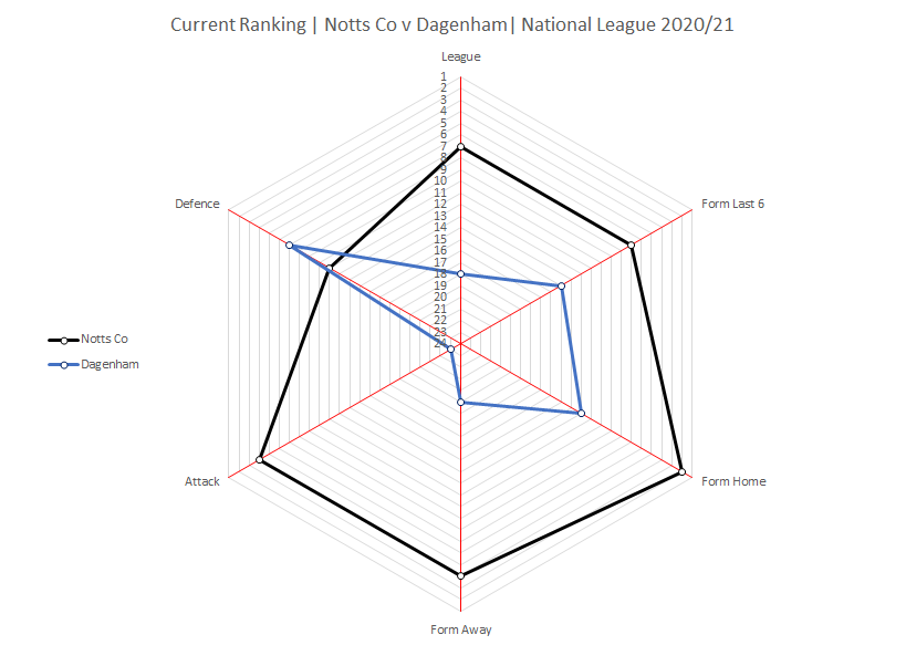 In the last 6 games Dagenham have faced more attempts per game than Notts but their opponents have needed more chances to score against them than those teams that have faced Notts which would suggest that despite being ineffective up front Dagenham are more resilient in defence than Notts.