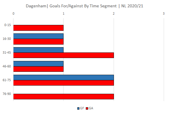 Goals by time segment for Dagenham: