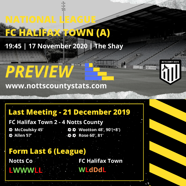 Notts got the better of Halifax in both league fixtures last season which saw the two clubs face each other for the first time since March 1973 a game played before the reformation of Halifax Town following administration in 2008.