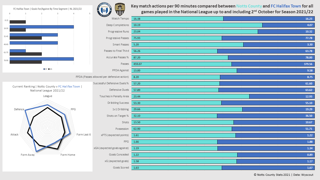 Basically this is a game that we can expect to be played at a high tempo. Both teams are comfortable in possession but Halifax are happier to get forward with the ball early whereas Notts are more inclined to keep possession and wait for their opportunities.