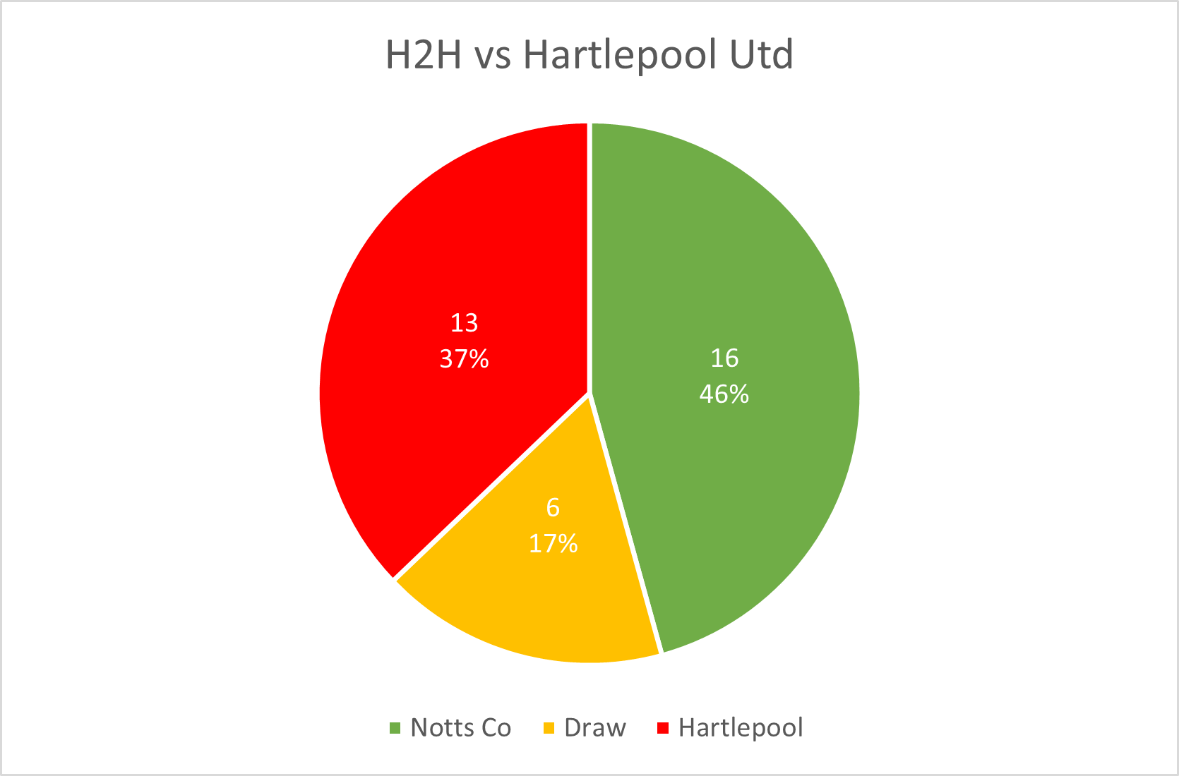 Notts and Hartlepool have previously met on 35 ocassions with Hartlepool having the better of the two encounters last season, drawing at Meadow Lane and winning 2-0 in the last meeting between the clubs at Victoria Park.