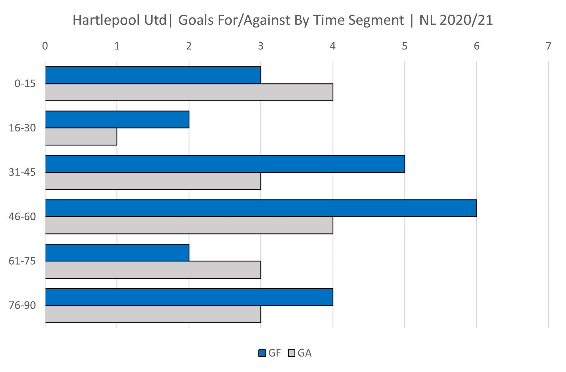 Goals by time segment for Hartlepool: