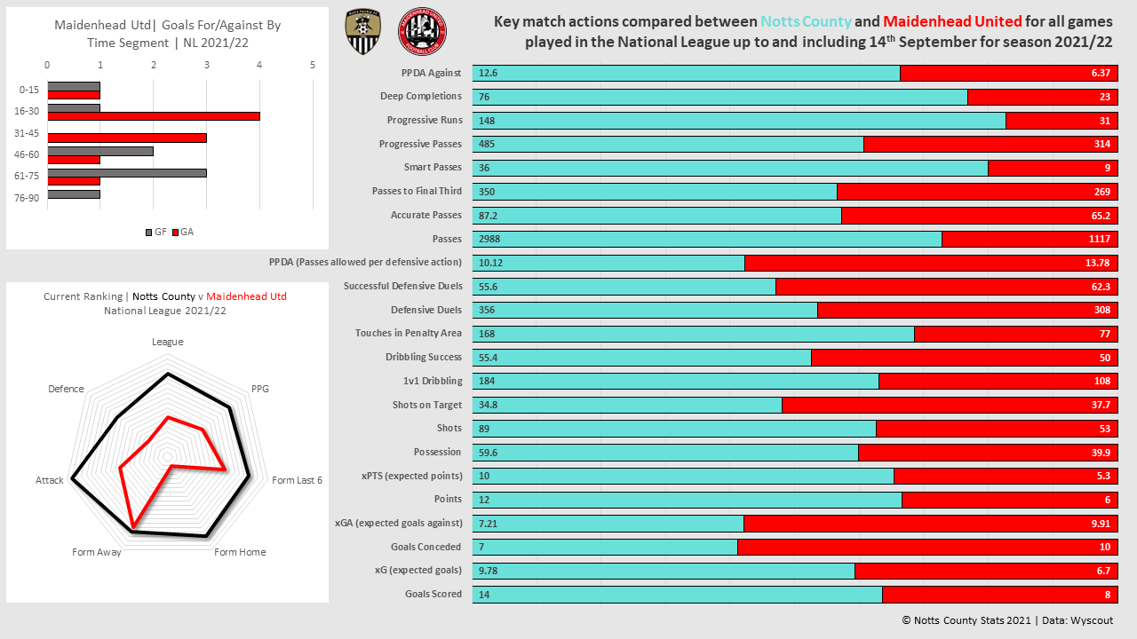 Essentially Notts are much stronger in just about all actions for this season so far but the one thing I will continue to mention is Notts' lack of goals in the early stages of games.